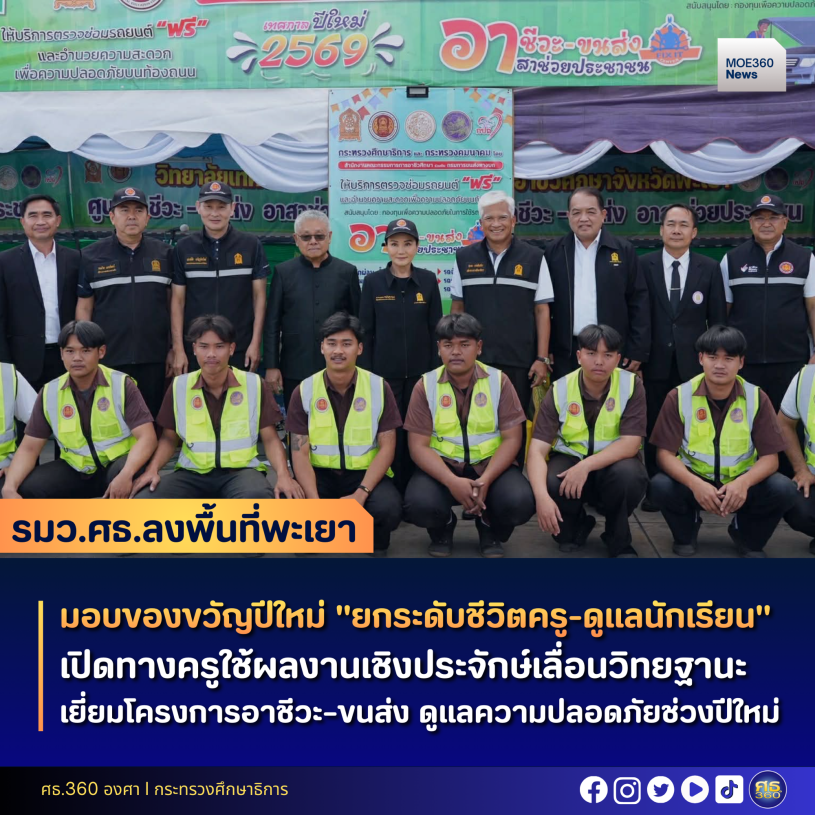 จากนั้น รัฐมนตรีว่าการกระทรวงศึกษาธิการได้ตรวจเยี่ยมการดำเนินงานโครงการ “อาชีวะ–ขนส่ง อาสาช่วยประชาชน เทศกาลปีใหม่ 2569” ซึ่งจัดโดยสำนักงานคณะกรรมการการอาชีวศึกษา บูรณาการความร่วมมือกับกรมการขนส่งทางบก และภาคีเครือข่ายทั้งภาครัฐและเอกชน โดยมีการตั้งจุดบริการอาชีวะอาสากว่า 150 จุดทั่วประเทศ เพื่อให้บริการตรวจเช็กและซ่อมแซมยานพาหนะเบื้องต้น รวมถึงดูแลความปลอดภัยแก่ประชาชนที่เดินทางกลับภูมิลำเนาและท่องเที่ยวในช่วงเทศกาลปีใหม่ พร้อมกล่าวชื่นชมและขอบคุณครู อาจารย์ และนักเรียน นักศึกษาอาชีวศึกษาที่เสียสละเวลาส่วนตัวมาร่วมให้บริการประชาชน พร้อมระบุว่า โครงการดังกล่าวสะท้อนบทบาทของอาชีวศึกษาที่มีส่วนสำคัญในการช่วยลดอุบัติเหตุ และสร้างความอุ่นใจให้แก่ประชาชนในช่วงเทศกาลสำคัญของประเทศ