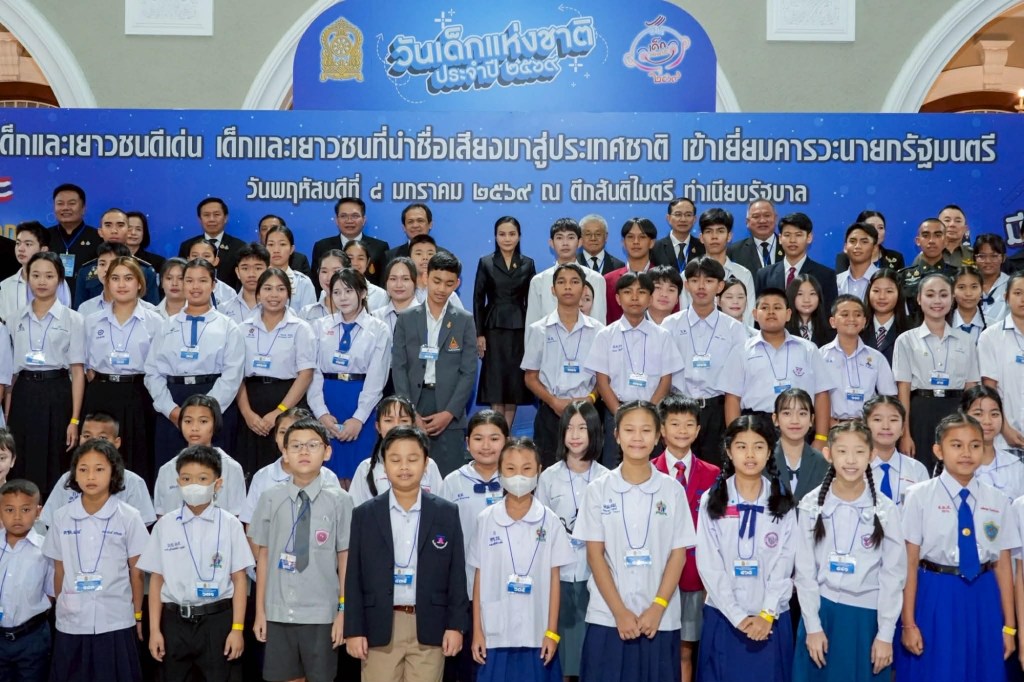 8 มกราคม 2569/ ศ.ดร.นฤมล ภิญโญสินวัฒน์ รัฐมนตรีว่าการกระทรวงศึกษาธิการ นำเด็กและเยาวชนดีเด่น และเด็กและเยาวชนที่นำชื่อเสียงมาสู่ประเทศชาติ จากทุกสังกัดทั่วประเทศ เข้าเยี่ยมคารวะและรับโอวาทจากนาย อนุทิน ชาญวีรกูล นายกรัฐมนตรี ณ ตึกสันติไมตรี ทำเนียบรัฐบาล พร้อมรับโล่รางวัลจากรัฐมนตรีว่าการกระทรวงศึกษาธิการ เนื่องในวันเด็กแห่งชาติ ประจำปี 2569 โดยมีนายองอาจ วงษ์ประยูร รัฐมนตรีช่วยว่าการกระทรวงศึกษาธิการ นายบุญสิงห์ วรินทร์รักษ์ ที่ปรึกษารัฐมนตรีว่าการกระทรวงศึกษาธิการ และผู้บริหารกระทรวงศึกษาธิการ เข้าร่วมด้วย