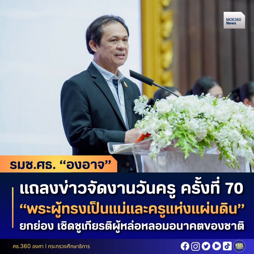 รมช.ศธ. กล่าวว่า งานวันครูครั้งที่ 70 จัดภายใต้หัวข้อ “พระผู้ทรงเป็นแม่และครูแห่งแผ่นดิน” เพื่อเทิดพระเกียรติพระบรมราชชนนีพันปีหลวง และยกย่องเชิดชูผู้ประกอบวิชาชีพทางการศึกษาที่ทำคุณประโยชน์ต่อวงการศึกษา โดยจัดทั้งส่วนกลางและส่วนภูมิภาค ในรูปแบบผสมผสาน Onsite และ Online กิจกรรมส่วนกลางวันที่ 16 มกราคม 2569 ณ หอประชุมคุรุสภา และมีการถ่ายทอดสดผ่านสถานีโทรทัศน์ NBT สถานีวิทยุกระจายเสียงฯ และช่องทางออนไลน์ของคุรุสภา เพื่อให้ผู้ประกอบวิชาชีพทางการศึกษา นักเรียน นิสิต นักศึกษา และประชาชนทั่วไป สามารถรับชมพิธีการงานวันครูไปพร้อมกันทั่วประเทศ