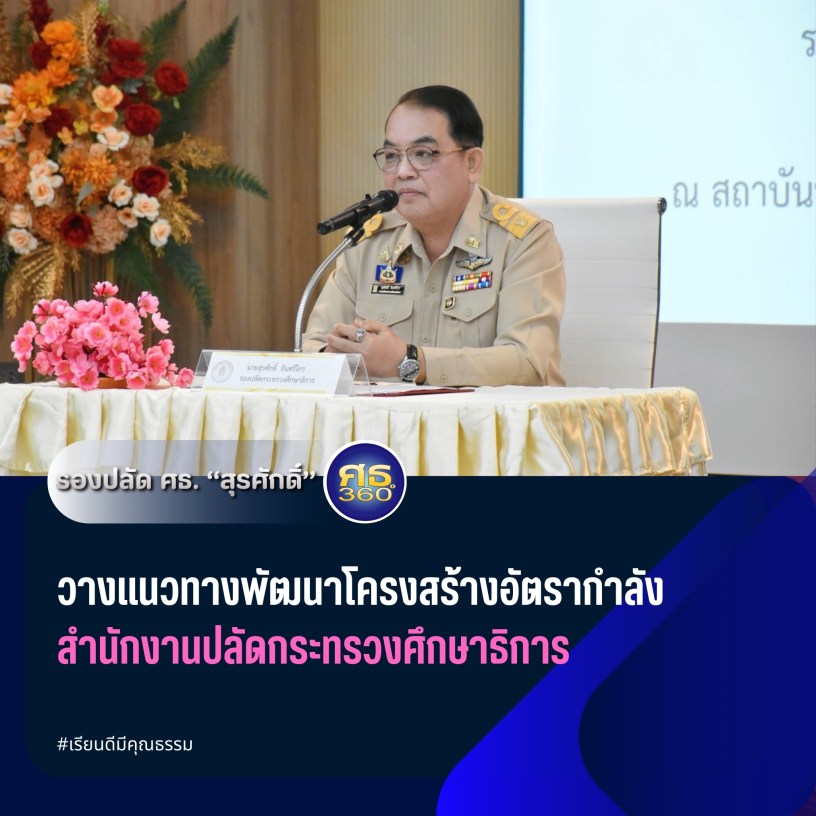จังหวัดนครปฐม – 12 มกราคม 2569 / นายสุรศักดิ์ อินศรีไกร รองปลัดกระทรวงศึกษาธิการ ได้รับมอบหมายจาก นายสุเทพ แก่งสันเทียะ ปลัดกระทรวงศึกษาธิการ เป็นประธานโครงการพัฒนาโครงสร้างและอัตรากำลังของหน่วยงานในสังกัดสำนักงานปลัดกระทรวงศึกษาธิการ ระหว่างวันที่ 12 – 14 มกราคม 2569 ณ สถาบันพัฒนาครู คณาจารย์ และบุคลากรทางการศึกษา