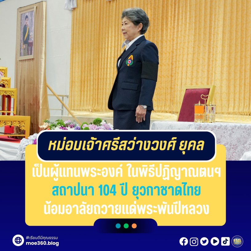 27 มกราคม 2569 / พระบาทสมเด็จพระเจ้าอยู่หัว ทรงพระกรุณาโปรดเกล้าโปรดกระหม่อมให้ หม่อมเจ้าศรีสว่างวงศ์ ยุคล เสด็จแทนพระองค์ พระเจ้าวรวงศ์เธอ พระองค์เจ้าโสมสวลี กรมหมื่นสุทธนารีนาถ ทรงเป็นประธานในพิธีปฏิญาณตนและสวนสนามของยุวกาชาด เนื่องในวันคล้ายวันสถาปนายุวกาชาดไทย ครบรอบ 104 ปี ภายใต้แนวคิด “ร้อยดวงใจ ด้วยจิตอาสา” พร้อมน้อมแสดงความอาลัยถวายแด่ สมเด็จพระนางเจ้าสิริกิติ์ พระบรมราชินีนาถ พระบรมราชชนนีพันปีหลวง สภานายิกาสภากาชาดไทย ณ สนามกีฬากลางจังหวัดนนทบุรี