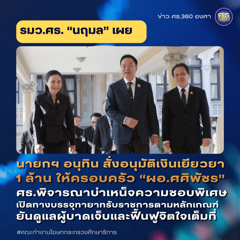 รมว.ศธ. เปิดเผยเพิ่มเติมว่า ภายหลังการลงพื้นที่เมื่อค่ำวานนี้ นายกรัฐมนตรีได้กำชับให้กระทรวงศึกษาธิการเร่งจัดทำรายละเอียดเสนอไปยังคณะกรรมการกองทุนของสำนักนายกรัฐมนตรีโดยด่วน ซึ่งกระทรวงฯ ได้ส่งข้อมูลและหลักฐานประกอบการพิจารณา และล่าสุด ได้รับแจ้งว่า คณะกรรมการได้พิจารณาอนุมัติการเยียวยาให้แก่ครอบครัวของ นางศศิพัชร สินสโมสร จำนวน 1 ล้านบาท โดยในวันอังคารที่ 17 ก.พ.จะมีการมอบเงินเยียวยาดังกล่าวให้กับครอบครัวของผู้เสียชีวิต ในพิธีพระราชทานเพลิงศพนางศศิพัชร เพื่อร่วมไว้อาลัยและแสดงความเคารพต่อวีรกรรมอันกล้าหาญ
