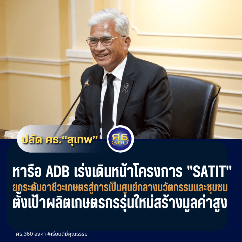 26 กุมภาพันธ์ 2569 / นายสุเทพ แก่งสันเทียะ ปลัดกระทรวงศึกษาธิการ ให้การต้อนรับคณะผู้แทนจากธนาคารพัฒนาเอเชีย (ADB) และสำนักงานผู้แทนธนาคารพัฒนาเอเชียประจำประเทศไทย (TRM) เพื่อหารือข้อราชการเกี่ยวกับความคืบหน้าโครงการ Sustainable Agriculture Transformation through Innovation in Technical and Vocational Education and Training หรือที่รู้จักในชื่อโครงการ “SATIT” (สาธิต) ซึ่งเป็นความร่วมมือในการปฏิรูปการศึกษาอาชีวศึกษาเกษตรของไทย ณ ห้องประชุมจันทรเกษม กระทรวงศึกษาธิการ