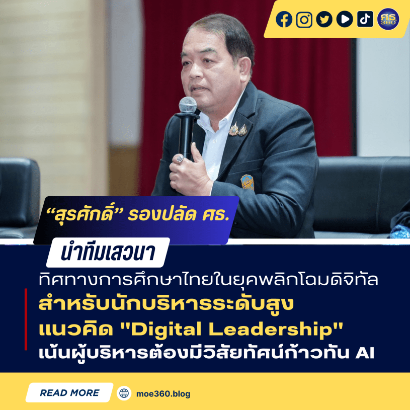 “นักบริหารไม่จำเป็นต้องเป็นผู้ลงมือปฏิบัติเองหรือเก่งเทคโนโลยีในเชิงลึก แต่ต้องมีวิสัยทัศน์และทัศนคติที่เปิดกว้าง (Digital Mindset) เพื่อนำพาองค์กรไปสู่โลกยุคใหม่ได้” นายสุรศักดิ์ รองปลัด ศธ.กล่าว