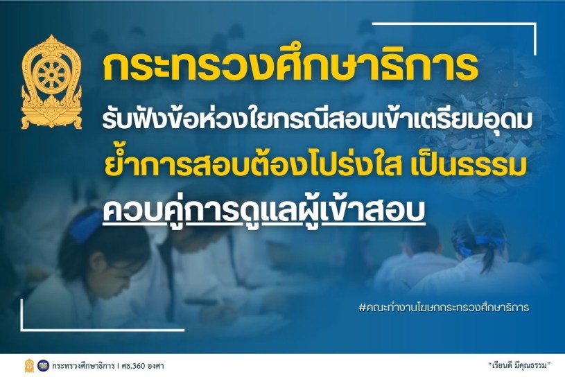 โฆษกกระทรวงศึกษาธิการ กล่าวว่า การสอบคัดเลือกในสถานศึกษาที่มีผู้สมัครจำนวนมาก จำเป็นต้องดำเนินการภายใต้หลักความสุจริต โปร่งใส และความเป็นธรรม โดยการกำหนดแนวปฏิบัติเกี่ยวกับสิ่งของที่สามารถนำเข้าห้องสอบหรือไม่อนุญาตให้นำเข้า ถือเป็นมาตรการที่ใช้ในการสอบแข่งขันโดยทั่วไปเพื่อป้องกันการทุจริต ทั้งนี้ กระทรวงศึกษาธิการรับทราบว่าผู้เข้าสอบและผู้ปกครองจำนวนมากได้เตรียมตัวตามแนวปฏิบัติของสนามสอบ ขณะเดียวกัน เหตุการณ์ที่เกิดขึ้นสะท้อนให้เห็นถึงความสำคัญของการบริหารจัดการสนามสอบให้สอดคล้องกับสถานการณ์ที่มีผู้เข้าสอบจำนวนมากและเดินทางมาจากหลากหลายพื้นที่