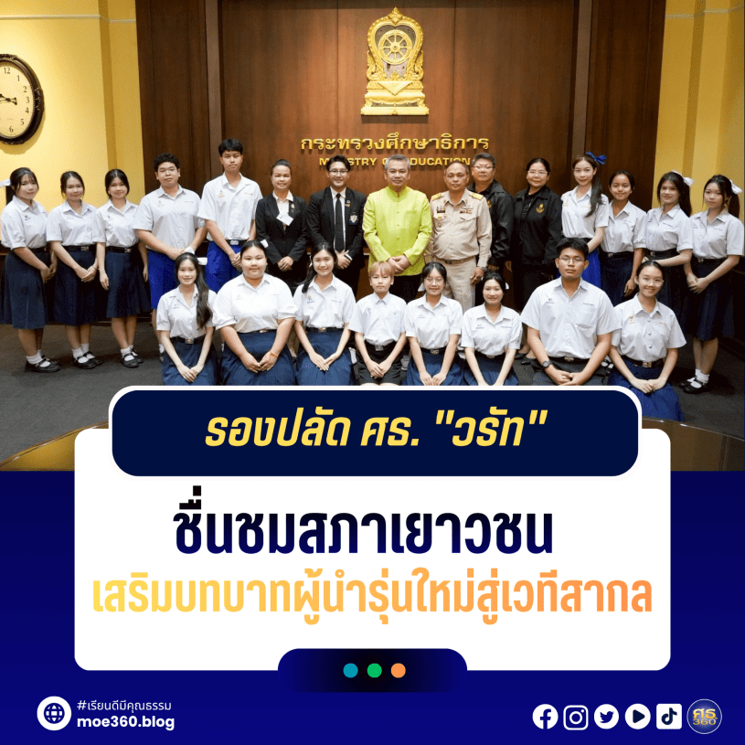 30 มีนาคม 2569 – นายสุเทพ แก่งสันเทียะ ปลัดกระทรวงศึกษาธิการ มอบหมายให้ นายวรัท พฤกษาทวีกุล รองปลัดกระทรวงศึกษาธิการ เป็นประธานในพิธีมอบเกียรติบัตร พร้อมทั้งให้กำลังใจและโอวาทแก่คณะเด็กและเยาวชน โดยมีคณะกรรมการการบริหารสภาองค์กรเยาวชนสร้างสรรค์พัฒนาสังคม เข้าร่วม ณ ห้องราชวัลลภ กระทรวงศึกษาธิการ