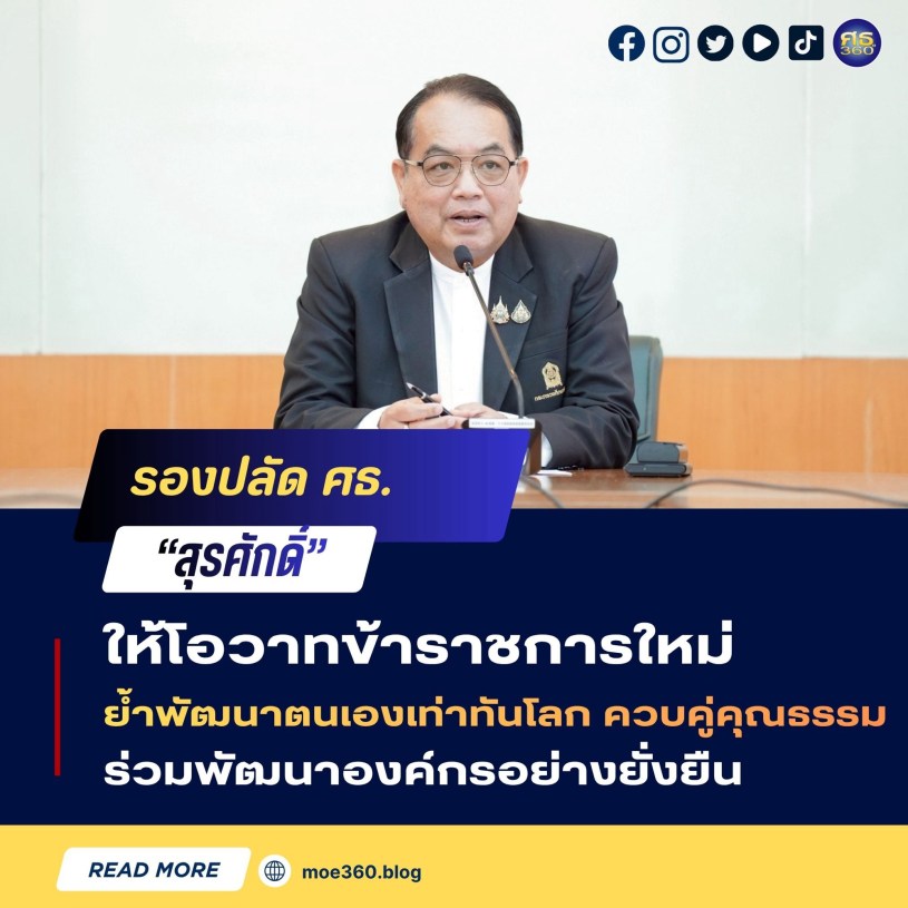 7 เมษายน 2569 – ปลัดกระทรวงศึกษาธิการ มอบหมายให้ นายสุรศักดิ์ อินศรีไกร รองปลัดกระทรวงศึกษาธิการ เป็นประธานในการรายงานตัวเพื่อบรรจุเข้ารับราชการเป็นข้าราชการครูและบุคลากรทางการศึกษา ตำแหน่งบุคลากรทางการศึกษาอื่นตามมาตรา 38 ค.(2) ณ ห้องประชุมสอาด พิมพ์สวัสดิ์ ชั้น 3 อาคารรัชมังคลาภิเษก 1 กระทรวงศึกษาธิการ
