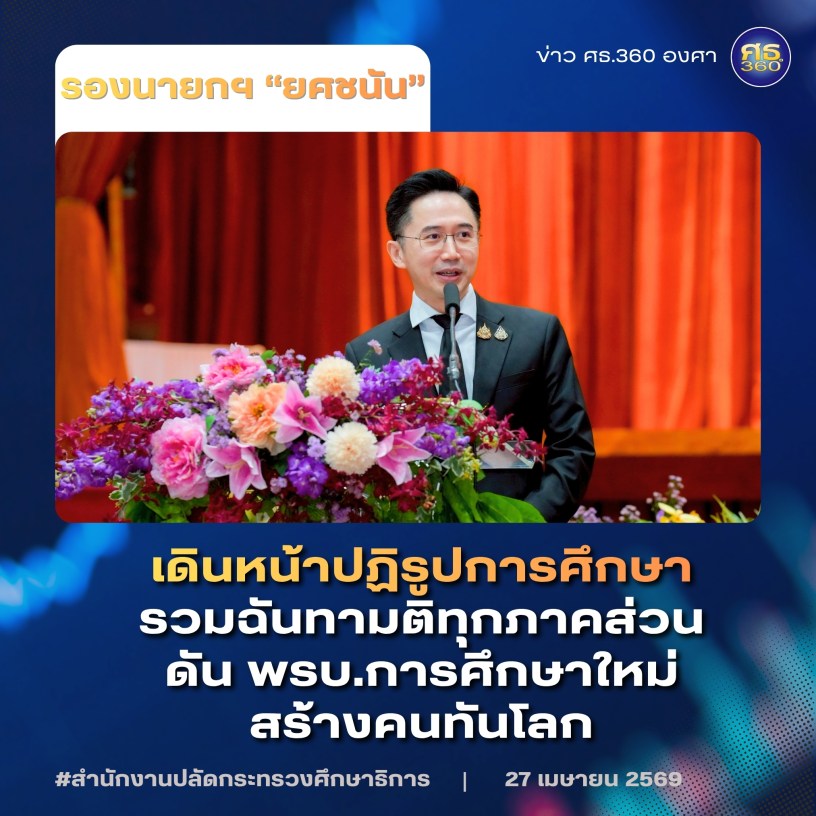 กระทรวงศึกษาธิการ – 27 เมษายน 2569 / ศาสตราจารย์ยศชนัน วงศ์สวัสดิ์ รองนายกรัฐมนตรี และรัฐมนตรีว่าการกระทรวงการอุดมศึกษา วิทยาศาสตร์ วิจัยและนวัตกรรม (อว.) เป็นประธานการประชุม MOE Human Capital Blueprint Workshop “การออกแบบสถาปัตยกรรมการศึกษาไทยและทุนมนุษย์“ ณ หอประชุมคุรุสภา
