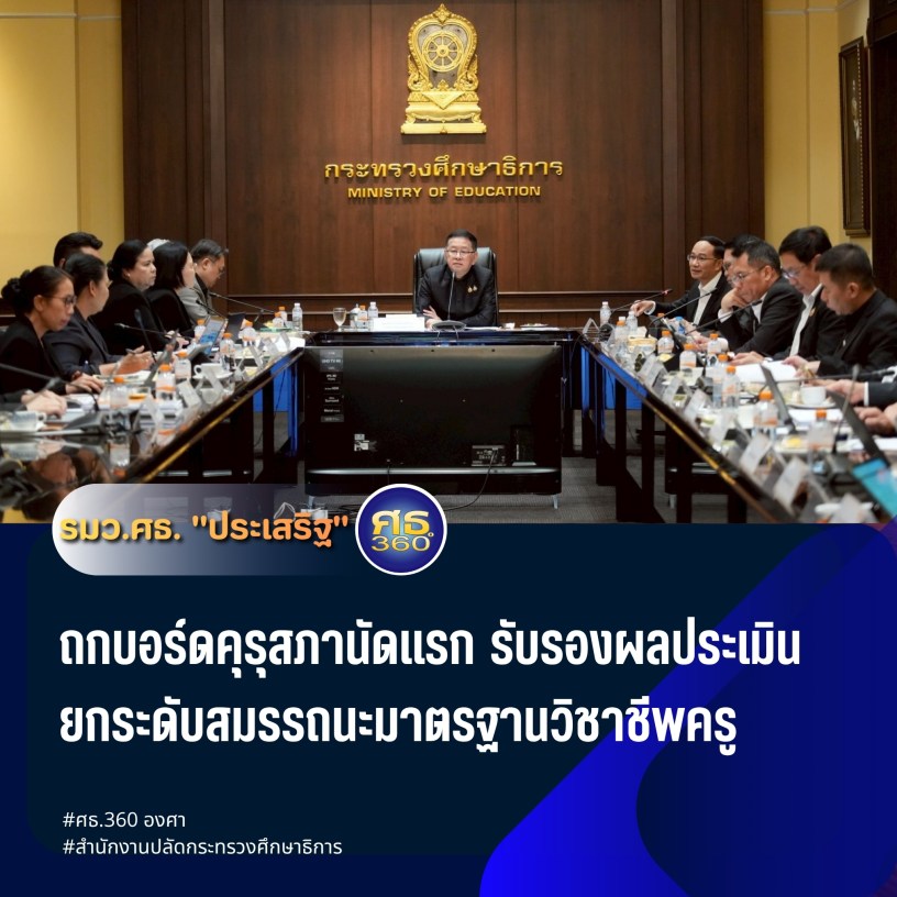กระทรวงศึกษาธิการ – 28 เมษายน 2569 / นายประเสริฐ จันทรรวงทอง รัฐมนตรีว่าการกระทรวงศึกษาธิการ เป็นประธานการประชุมคณะกรรมการคุรุสภา ครั้งที่ 5/2569 โดยมีนายสุเทพ แก่งสันเทียะ ปลัด ศธ. นางอมลวรรณ วีระธรรมโม เลขาธิการ คส. ตลอดจนผู้บริหาร ศธ. ผู้ทรงคุณวุฒิ คณะกรรมการฯ เข้าร่วม ณ ห้องประชุมราชวัลลภ และผ่านระบบออนไลน์