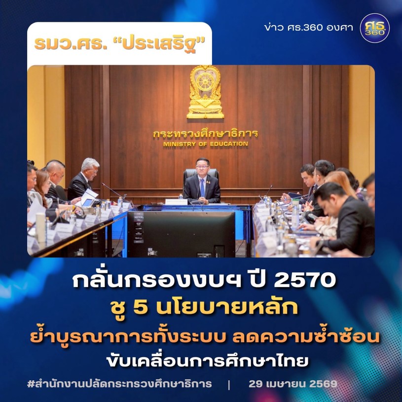 29 เมษายน 2569 – นายประเสริฐ จันทรรวงทอง รัฐมนตรีว่าการกระทรวงศึกษาธิการ (รมว.ศธ.) เป็นประธานการประชุมผู้บริหารระดับสูงกระทรวงศึกษาธิการ ครั้งที่ 1/2569 โดยมี นายอัครนันท์ กัณณ์กิตตินันท์ รัฐมนตรีช่วยว่าการกระทรวงศึกษาธิการ (รมช.ศธ.) นายสุเทพ แก่งสันเทียะ ปลัดกระทรวงศึกษาธิการ พร้อมด้วยผู้บริหารระดับสูงจากหน่วยงานในสังกัด/องค์กรในกำกับ และผู้ที่เกี่ยวข้อง เข้าร่วม ณ ห้องประชุมราชวัลลภ กระทรวงศึกษาธิการ