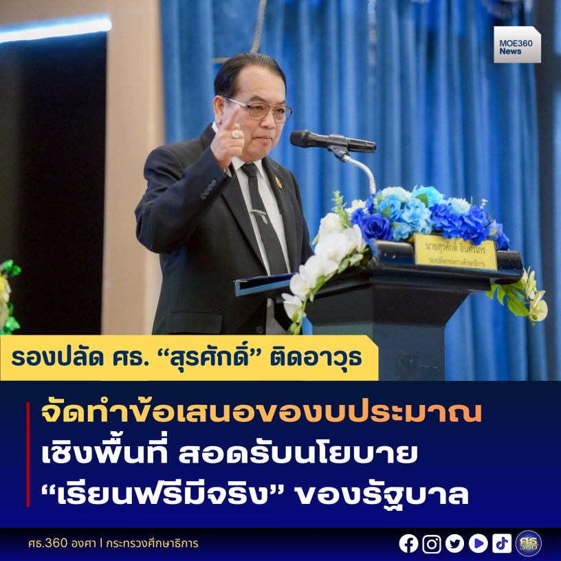 29 เมษายน 2569 / นายสุเทพ แก่งสันเทียะ ปลัดกระทรวงศึกษาธิการ มอบหมายให้ นายสุรศักดิ์ อินศรีไกร รองปลัดกระทรวงศึกษาธิการ เป็นประธานประชุมเชิงปฏิบัติการสร้างการรับรู้ทิศทางการพัฒนาประเทศ เพื่อขับเคลื่อนการบริหารจัดการศึกษาในระดับภาคและกลุ่มจังหวัด พร้อมบรรยายพิเศษ “นโยบายการขับเคลื่อนการบริหารจัดการศึกษาระดับภาคและกลุ่มจังหวัด” โดยมีผู้แทนจากสำนักงานศึกษาภาค สำนักงานศึกษาธิการจังหวัดทั่วประเทศ เข้าร่วม ณ โรงแรมเดอะบาซาร์ แบงค็อก กรุงเทพฯ